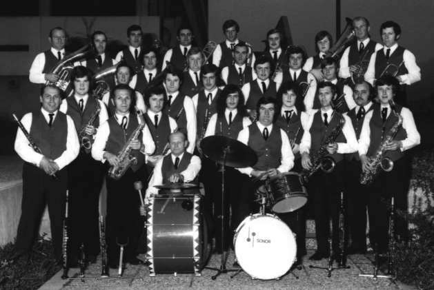Das Bild zeigt die Musikkapelle beim 50jährigen Jubiläum.