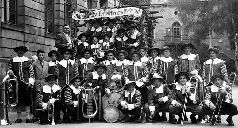 Der Musikverein beim historischen Festzug in Rastatt am 25.09.1955