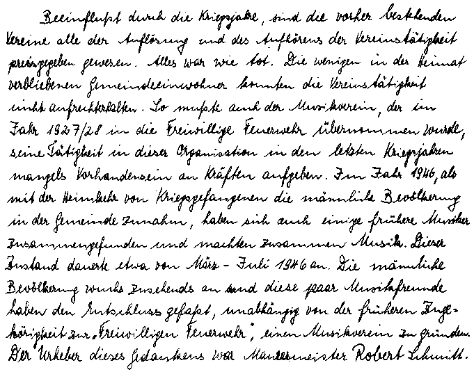 Originaltext aus dem Schriftführerbuch des Musikvereins Weisenbach, geschrieben