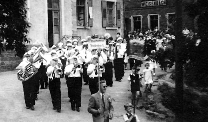 Ein peinliches Missgeschick entstand am 5. August 1957 als der Musikverein die Turner des TV Weisenbach am Bahnhof empfangen wollte, die am Landesturnfest in Mannheim teilnahmen. Bei der Einfahrt des verabredeten Zuges intonierte die Kapelle den Turnermarsch. Zum Entsetzen aller entstieg dem Zug überhaupt kein Turner, und die ganze Zeremonie mußte beim Eintreffen des nächsten Zuges wiederholt werden.