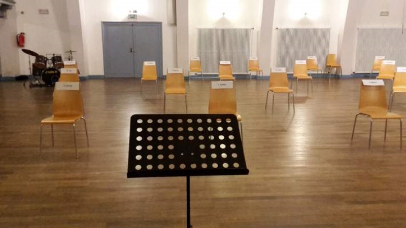 der Probenbetrieb aus Platzgründen weiterhin nur im Saal der Festhalle