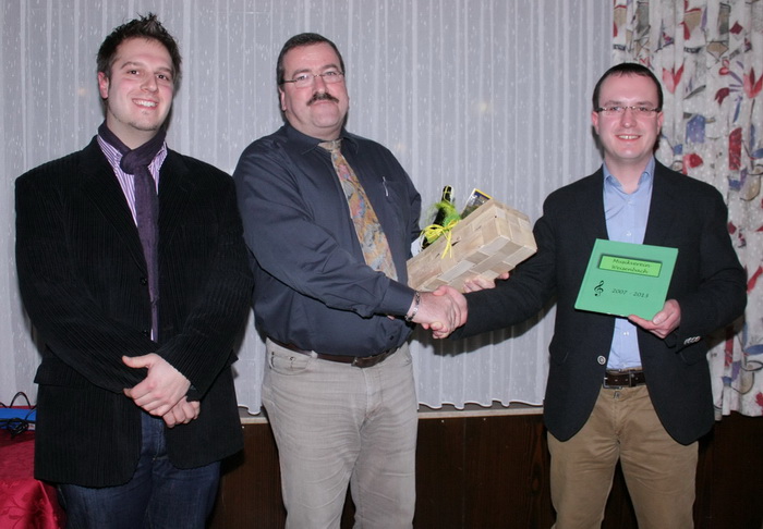 Bei der Generalversammlung des Musikvereins am Sonntag, 20. Januar 2013, kandidierte Helmut Bohn nicht mehr für das Amt des 1. Vorsitzenden. Steffen Miles dankte Herrn Bohn im Namen aller Musikerinnen und Musiker, der gesamten Vorstandschaft und aller passiven Mitglieder für seine geleistete Arbeit. Helmut Bohn hatte im Mai 2007 das Amt des 1. Vorsitzenden beim Musikverein Weisenbach übernommen. Bis zu diesem Zeitpunkt war er 24 Jahre passives Mitglied des Vereins. Sein Sohn Thomas spielte seit 1993 Trompete. Dennoch war dieses Amt in einem musizierenden Verein sicherlich Neuland für ihn. Lässt sich doch das Aufgabenspektrum eines Vereinsvorsitzenden mit dem eines Managers eines kleinen Unternehmens vergleichen. Das Anforderungsprofil ist vielseitig: verwalten, organisieren, moderieren, Flexibilität, soziale Kompetenz, Öffentlichkeitsarbeit, Sponsoren-Akquise. Herr Bohn hat dieses Anforderungsprofil optimal erfüllt und seine Aufgabe sehr gewissenhaft wahrgenommen. Mit seiner „externen“ Sicht, mit seiner beruflichen Erfahrung, mit Tatkraft und neuen Ideen hat er sich für den Musikverein eingesetzt. Dabei hatte er die Zukunftsfähigkeit des Vereins sowie das kameradschaftliche Miteinander stets im Blick. Neben den jährlichen Tagesauflügen hatte Herr Bohn zwei große Vereinsausflüge organisiert. Im Jahr 2010 besuchte der Musikverein die Partnergemeinde San Costanzo, im Jahr 2011 stand eine Konzertreise nach Culembourg in Holland auf dem Programm. Alle Teilnehmenden werden sich gerne an diese tollen Reisen erinnern. Steffen Miles wünschte Herrn Bohn alles Gute und überreichte ein Präsent als Dankeschön.